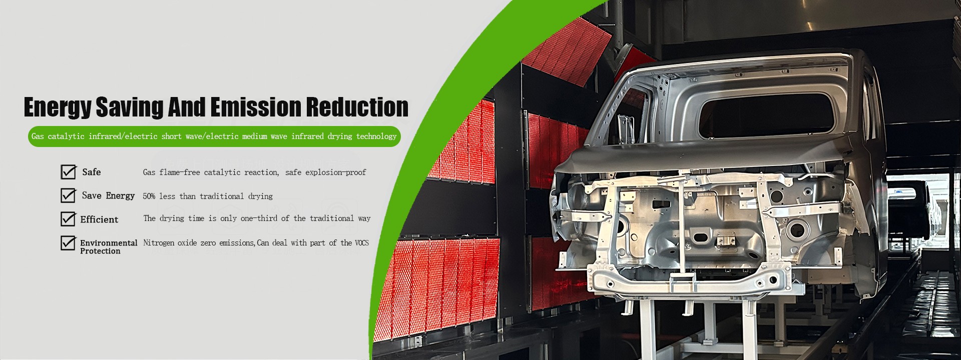 Reduce 2/3 of the furnace body footprint, and the curing time is only one-third of the traditional hot air drying curing time